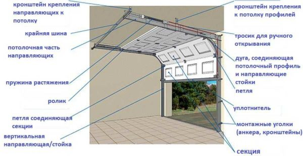 Секционно-подъемные ворота ставят в гаражах, хозблоках, других технических помещениях. Они удобны тем, что при открывании просто поднимаются вверх, не требуя свободного пространства перед полотном. Еще один плюс —