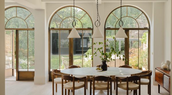 Замечательная архитектура этого дома на западе Лондона, а точнее изумительные арочные окна, через которые виднее чудесный сад на заднем дворе, стали главным вдохновением для дизайна его интерьеров. Так,