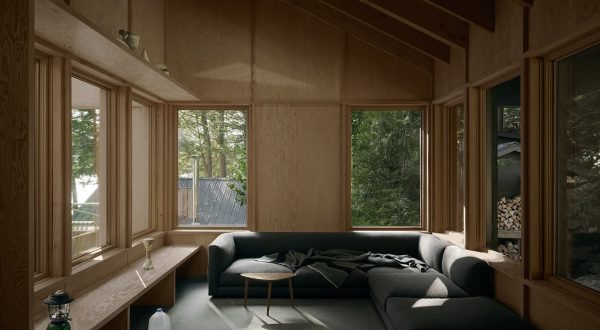 Интерьеры этого небольшого современного домика в лесу выполнены в стильном минимализме и на это есть две основные причины. Во-первых, в таком прекрасном месте и с такими количеством окон