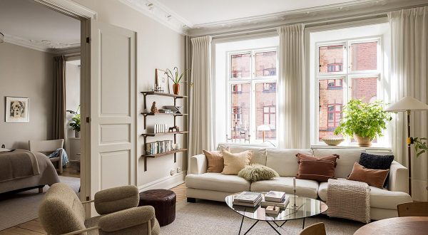 Интерьер этой шведской квартиры в бежевых тонах смотрится очень целостно и гармонично. В скандинавских интерьерах часто бывает, что одна или две комнаты «выпадают» из общей картины, но в
