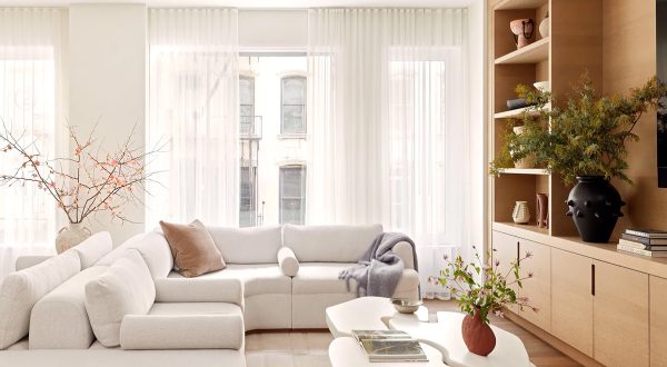 Дерево и молочные оттенки в мебели и декоре — набор материалов и красок в оформлении этой светлой квартире в Нью-Йорке довольно простой, но талантливый дизайнер сделал из него