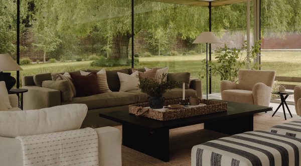 Две из четырех стен в гостиной этого современного дома из кирпича в графстве Кент выполнены из стекла, благодаря чему в интерьере царит поистине удивительная атмосфера. Зелёный газон и
