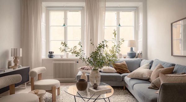 Интерьер этой квартиры в Гетеборге — это история про тактильную и визуальную нежность в оформлении небольшого жилья. Лёгкие пастельные оттенки в мебели и декоре сами по себе создают