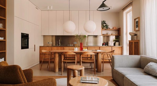 Эта квартира в высотном доме в Мельбурне доказывает, что минималистичные интерьеры — это не всегда холодно и строго. Благодаря натуральному дереву и приятным нейтральным оттенкам пространство излучает нежность