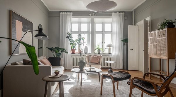 В случае с этой небольшой, но яркой и уютной квартирой в Гётеборге фотографы подловили идеальным момент для съемки — лучи утреннего солнца в большом количестве попадают в комнаты