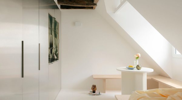 Эта крошечная квартира площадью всего 18 кв. м является результатом современной переделки тёмного помещения под крышей старого Османовского дома в центре Парижа, где раньше размещались комнаты прислуги. Несмотря