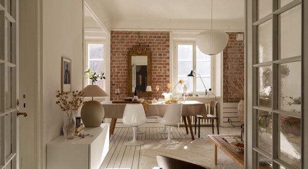 В этой очаровательной небольшой квартире в Гётеборге дизайнеры решили добавить ноток стиля бохо в декоре. Сухоцветы, грубый натуральный текстиль, зеркало в винтажной раме и деревянные элементы — всё