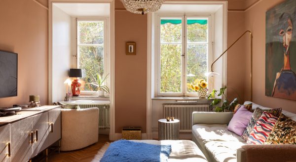 «Розовые стены и потолок в гостиной? Почему бы и нет!» — подумали хозяева этой небольшой двухкомнатной квартиры в Стокгольме и оформили интерьер в необычном, но нежном и приятном