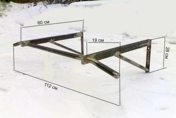 Несмотря на недостатки, вышеприведенная конструкция много раз повторена. Она проста, надежна, занимает немного места, поэтому популярна. Размеры немного корректируют, оставляя диаметры труб и толщину уголков без изменений или увеличивая толщину стенок. Пример — на фото ниже.
