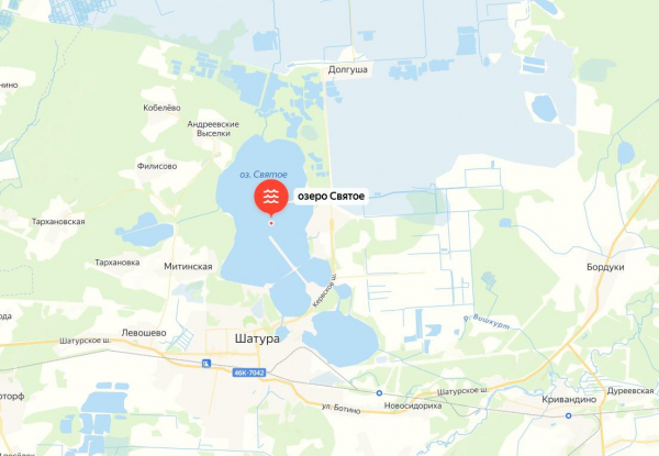 Самое большое озеро в Шатуре, на нем же расположен городской пляж. Добраться до Святого озера можно от железнодорожной станции на такси или автобусе № 8 до остановки «Городской пляж». От Москвы до Шатуры ходит электричка с Казанского вокзала или автобус № 376 от станции метро «Котельники». Адрес для поездки на автомобиле — городской округ Шатура, Московская улица, 41.