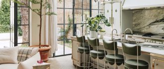 Обои в гостиной этой шведской квартиры не только в цветочек, но ещё и нежно-розового оттенка — более явного намёка на женственный характер интерьера и не придумаешь. А если добавить к этому ещё и светлую мягкую мебель, ковёр с высоким ворсом и живые растениями, то получится вот такой утончённый и чувственный интерьер. В спальне мы можем заметить обои с таким же принтом, но уже солнечного желтого цвета. Прекрасное женское царство!