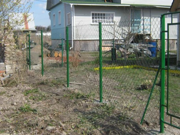 Как бы ни называлось это ограждение, а имеет оно солидное количество положительных сторон. Первый и немаловажный плюс — дешевизна. Это касается как самого заполнения — сетки, так и остальной конструкции. Чтобы натянуть сетку, фундамента не требуется. Достаточно пробурить лунки примерно на метр, вставить столб и, засыпав щебня, хорошо его уплотнить. Все, никаких бетонных работ. На большинстве грунтов такой способ установки для данного заполнения работает на «пять».