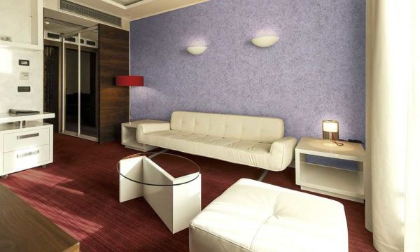 Стены, окрашенные краской с эффектом велюра хорошо моются, долго не выцветают и не меняют внешний вид. Могут только «залосниться» от частых прикосновений. Поэтому их лучше применять для жилых помещений, не для коридоров и кухонь.