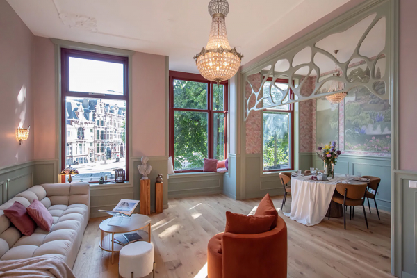 Мы часто любуемся стилем ар-нуво в архитектуре зданий по всей старой Европе, а вот с интерьерами в этом стиле имеем дело довольно редко. Сегодня у нас необычный интерьер в нидерландском городе Гаага, в котором прослеживается влияние этого прекрасного стиля начала прошлого века. В первую очередь в глаза бросаются характерная перегородка в гостиной и дверь оригинальной формы — самая что ни есть прямая отсылка к ар-нуво. Дальше — настенное панно и обои растительной тематики и цветовая гамма из пыльно-розового и оливкового оттенков, которые также можно отнести к атрибутам стиля. Конечно же, много здесь и скандинавского дизайна, но это не удивительно, ведь эта школа также сильна и популярная в этих краях. Enjoy!