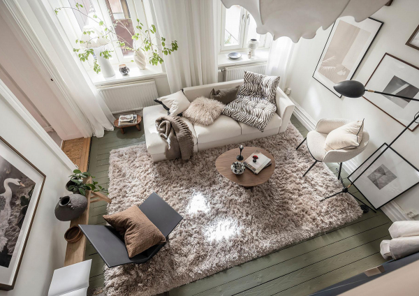 Мало того, что эта однушка в Гётеборге смотрится довольно стильно благодаря черно-белому декору и современной мебели с постерами, так она ещё и спроектирована довольно практично. Взять хотя бы гостиную: дизайнеры смастерили здесь функциональную антресоль со спальным местом наверху и просторным гардеробом внизу, убив сразу двух зайцев. Прекрасное использование небольшого жилого пространства!