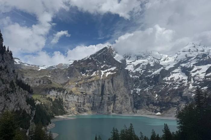 - Пешеходные маршруты. От верхней станции фуникулера начинаются два основных пути. Легкий маршрут (1–1,5 часа) ведет к берегу озера по пологой тропе через леса. Более сложный подъем (2–3 часа) позволит забраться на хребет над озером, откуда открываются виды на долину Кандерштег, и, если повезет можно заметить горных козлов (Capra ibex), обитающих в этих краях.