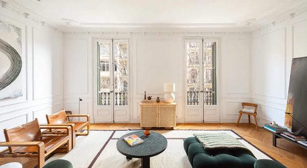 Эта квартира расположилась в старом доме в самом сердце старого города Барселоны, поэтому заслуживала особого подхода во время недавнего ремонта. Для начала дизайнеры восстановили лепнину и настенные молдинги,