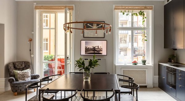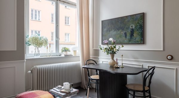 В желании сделать интерьер этой двухкомнатной квартиры в Стокгольме элегантным, дизайнеров не остановила даже его совсем маленькая площадь в 34 кв. м — молдинги украшают стены жилья, подчеркивая
