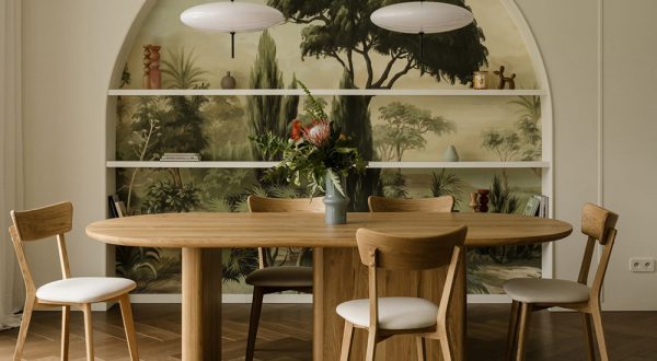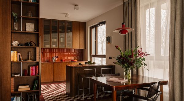 Попадая в эту квартиру в одном из живых центральных районов Варшавы, мы словно переносимся в прошлое. Оригинальный дизайн с тёмным деревом и яркими акцентами был вдохновлён эпохой 60-70х