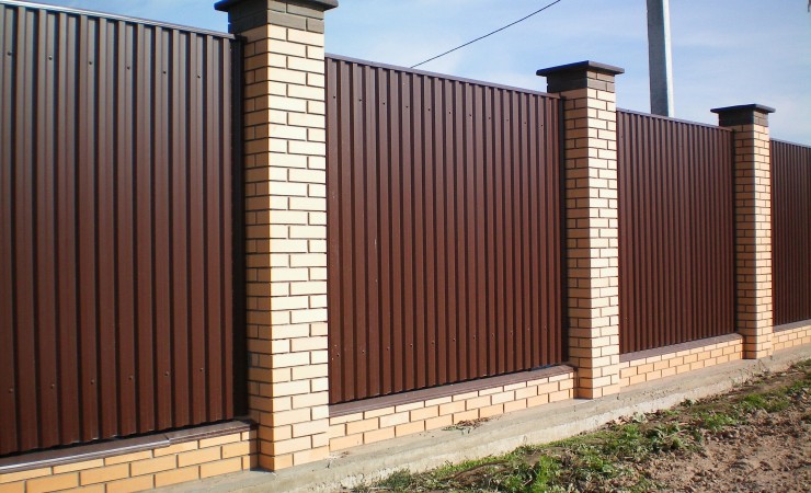 Профнастил — это стальной лист с полимерным покрытием, который не подвержен коррозии и выдерживает ветровые нагрузки. Он лёгок в монтаже и не требует частого обслуживания. Варианты цвета и текстуры позволяют легко вписать забор в стиль вашего дома или дачного участка.